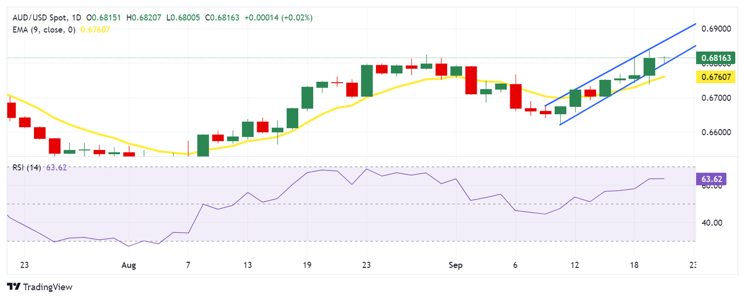 Technical Analysis: Australian Dollar holds a position within the rising wedge near 0.6800