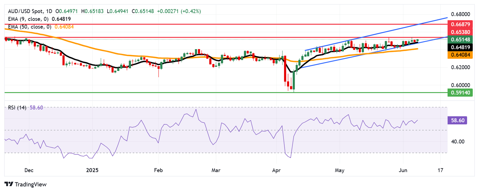 On the downside, the primary support appears at the nine-day EMA of 0.6481, aligned with the ascending channel’s lower boundary around 0.6480. A breach below this crucial support zone could weaken the bullish bias and lead the AUD/USD pair to test the 50-day EMA at 0.6408.