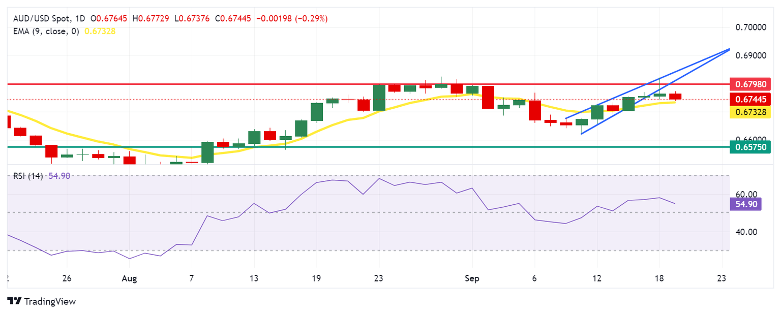 Technical Analysis: Australian Dollar hovers around 0.6750; next support at nine-day EMA