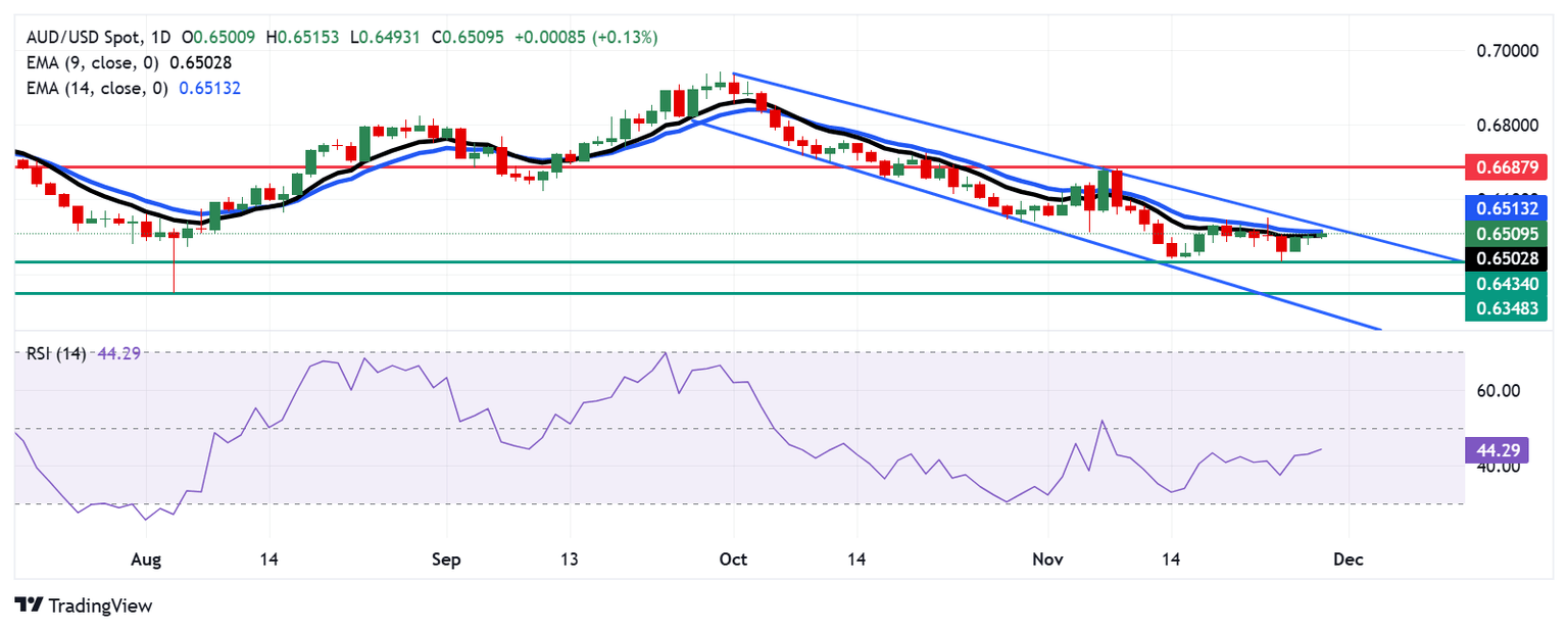 Technical Analysis: Australian Dollar hovers around 0.6500, nine-day EMA
