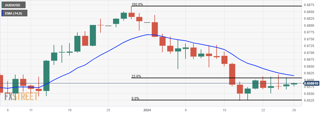 The Australian Dollar (AUD) strives to build on its recent gains for the second consecutive session on Friday. The bullish momentum seems to be resurfacing, supporting a notable upward movement in the AUD/USD pair. Interestingly, the Australian Dollar strengthens even in the face of an improved US Dollar (USD), despite the backdrop of lower US Treasury yields. However, the volatility is expected to subside as financial markets are closed in observance of the Australia Day Holiday.