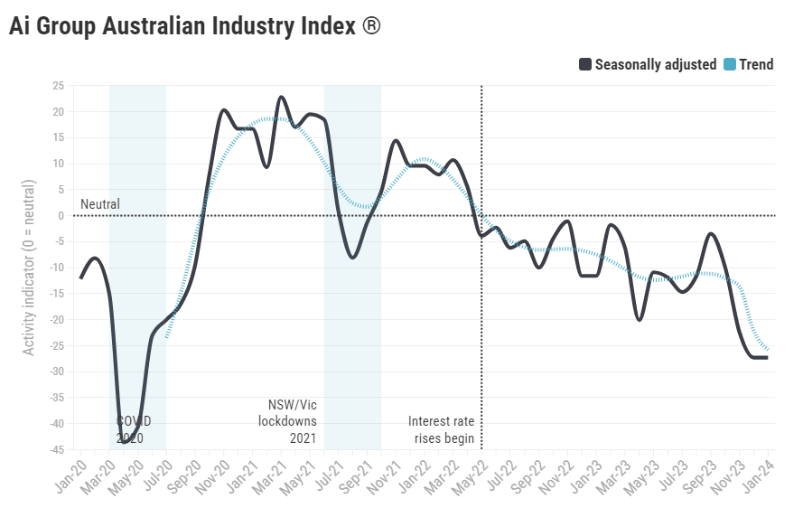 Australia's AiG Industry Index recovers in January to -14.9 from -27.3