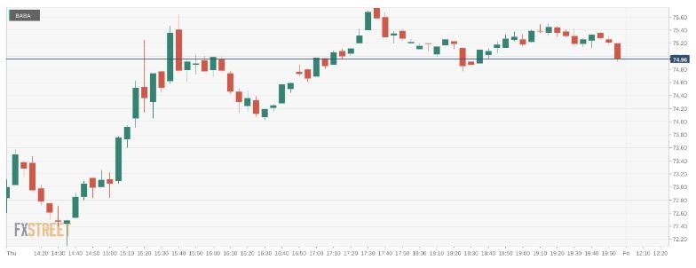 Alibaba Group (BABA) dropped lower on Thursday despite a historic intraday rally that saw the S&P 500 snap its recent six-day losing streak. Shares of BABA fell by 1% and closed the trading session at a price of $75.01. Stocks initially pulled back after the release of the September CPI Report but pulled off a record bounce later in the day. Inflation came in higher than expected for September, but the oversold conditions in the market led to a relief rally. Overall, the Dow Jones gained 2.8%, the S&P 500 added 2.6%, and the Nasdaq rose higher by 2.2% during the session.