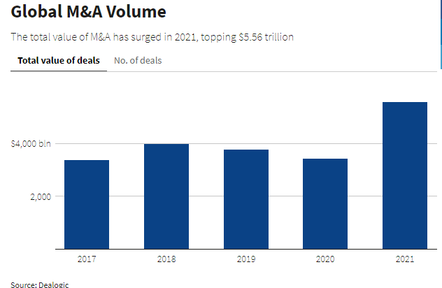 Indeed Reuters reports that M&A activity hit a 15-year high in 2021.