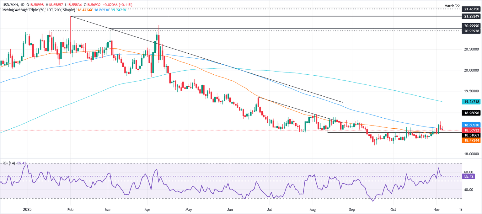 On the upside, if USD/MXN climbs above 18.60, the next resistance would be the September 2 high at 18.86, ahead of the 19.00 figure.