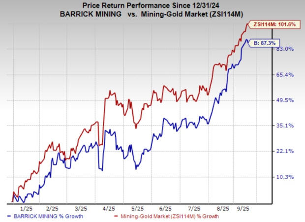 Barrick’s shares have gained 87.3% year to date compared with the Zacks Mining – Gold industry’s rise of 101.6%, courtesy of the gold price rally.