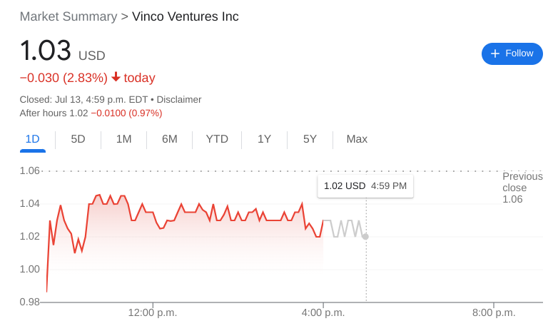 NASDAQ:BBIG extended its recent slide and briefly fell below the $1.00 price level during intraday trading on Wednesday. Shares of BBIG dropped by a further 2.83% and closed the trading day at $1.03. Stocks were volatile on Wednesday as a hotter than expected CPI report for June sent markets reeling during morning trading. Stocks quickly rebounded and erased most of the earlier losses, but all three major indices ended up lower at the closing bell. Overall, the Dow Jones fell by 208 basis points, while the S&P 500 and the NASDAQ posted losses of 0.45% and 0.15% respectively during the session.