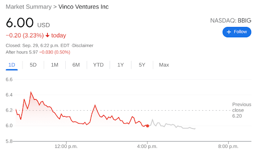 NASDAQ:BBIG continued to edge lower on Wednesday, after the broader markets took a breath following Tuesday’s massive sell-off. Shares of BBIG fell by 3.23% on Wednesday, and closed the trading day at $6.00 even. The meme sector saw another red day as bigger names like AMC (NYSE:AMC), GameStop (NYSE:GME), and ContextLogic (NASDAQ:WISH) were all trading below water. This came on a small bounce back day for all three major indices, as the Dow Jones and S&P 500 closed the day slightly higher, while the NASDAQ fell slightly again and lost 0.24%.
