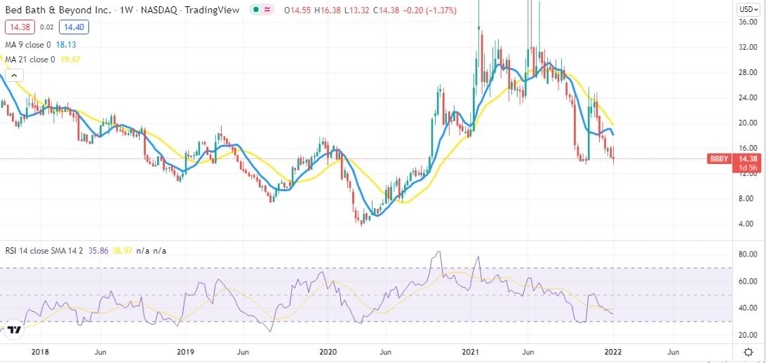 Is this 10% gain the beginning of a turnaround? Here at FXStreet, we are doubtful. Thursday's gain seems to be the product of retail investors trying to invoke a short squeeze. With 47% of the BBBY float shorted, a significant updraft could force bears to cover their shorts, which in turn pushes the share price even higher in a vicious cycle i.e. other meme stocks like GameStop (GME) and AMC Entertainment Holdings (AMC) from last year.