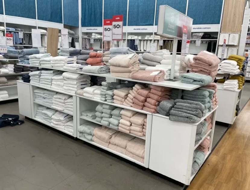 The photo showcases a Bed Bath & Beyond store with some items on sale for 50% off.