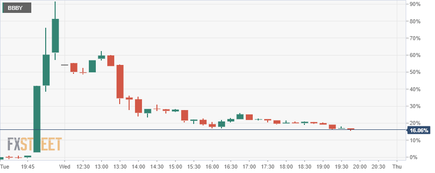- But that is a collapse from premarket when BBBY was up nearly 90%.