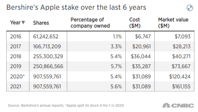 As we can see, Berkshire has bet the house on Apple, so this will inform our projections.