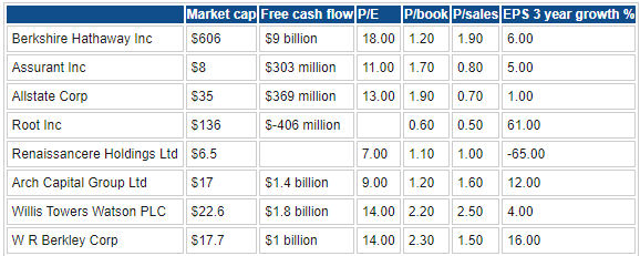Berkshire does not really have any direct competitors as it operates in such a widespread and diverse range of industries. For the sake of comparison, we include insurance as a benchmark.