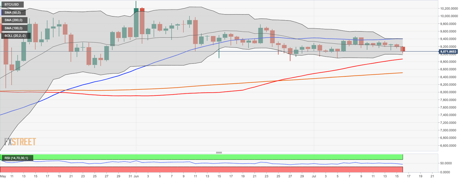 Despite the massive sell-off on the cryptocurrency market, BTC/USD is still locked in a tight range. The coin stays above $9,000, and this is a good signal in the short-run. A sustainable move below this area will bring weekly SMA50 at $8,850 into focus. This MA has been limiting the decline since the beginning of May.