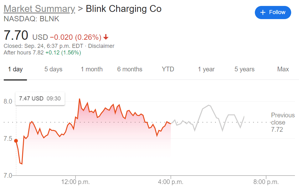 - NASDAQ:BLNK trades flat and falls 0.26% despite broader markets gaining.