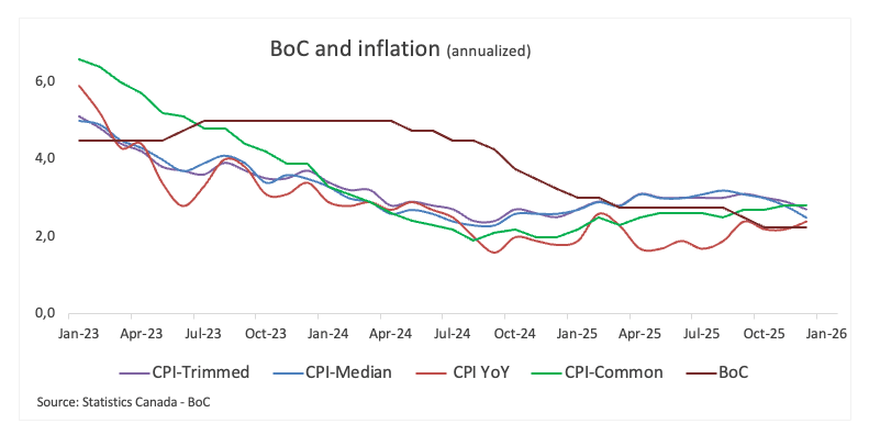 Previewing the BoC’s interest rate decision, analysts at the National Bank of Canada (NBC) noted, “The Bank of Canada is set to leave its overnight target unchanged at 2.25%, a decision widely expected by forecasters and OIS markets. This would mark the second consecutive hold after policymakers declared in October that policy is at ‘about the right level’ to keep inflation near target and support the economy’s transition”.