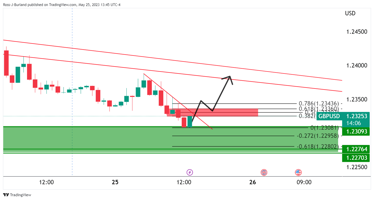 GBP/USD is at a key area of support and this could lead to a move back toward trendline resistance or, if bears commit, then we could see a sell-off towards 1.2270.