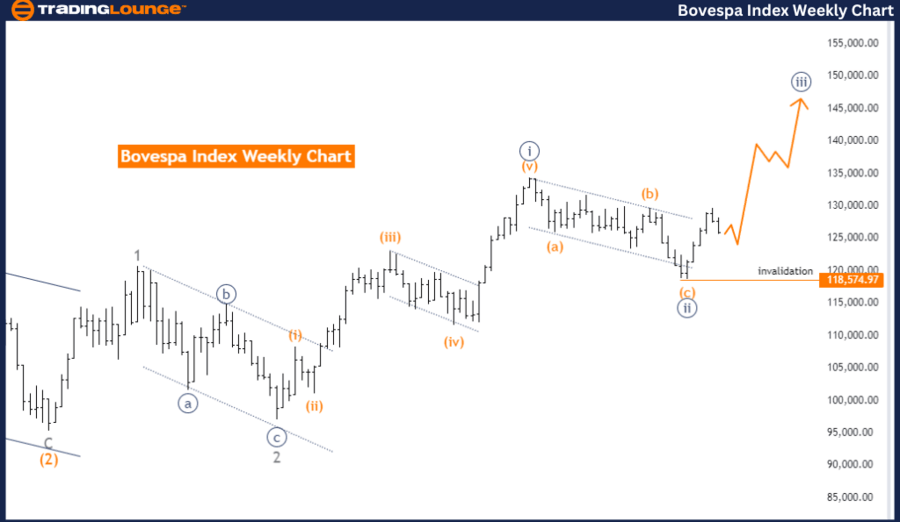 In summary, the Bovespa Index weekly chart analysis shows the market is in an impulsive trend phase within Navy Blue Wave 3, positioned in Gray Wave 3. The market has completed Navy Blue Wave 2 and is now in the impulsive phase of Navy Blue Wave 3. Following this phase, the market is expected to enter Navy Blue Wave 4, a corrective phase. The wave cancel invalid level is 118574.97, serving as a critical threshold for the validation of the current wave analysis.