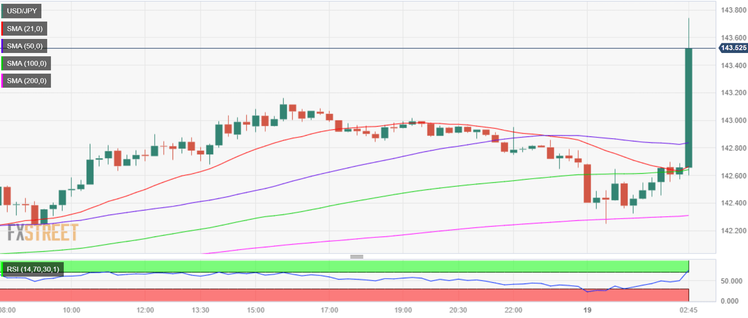 USD/JPY rallied over one big figure following the BoJ’s policy announcements. The pair is currently trading at 143.60, up 0.60% on the day, having tested 143.75 in a knee-jerk reaction to the BoJ decision.