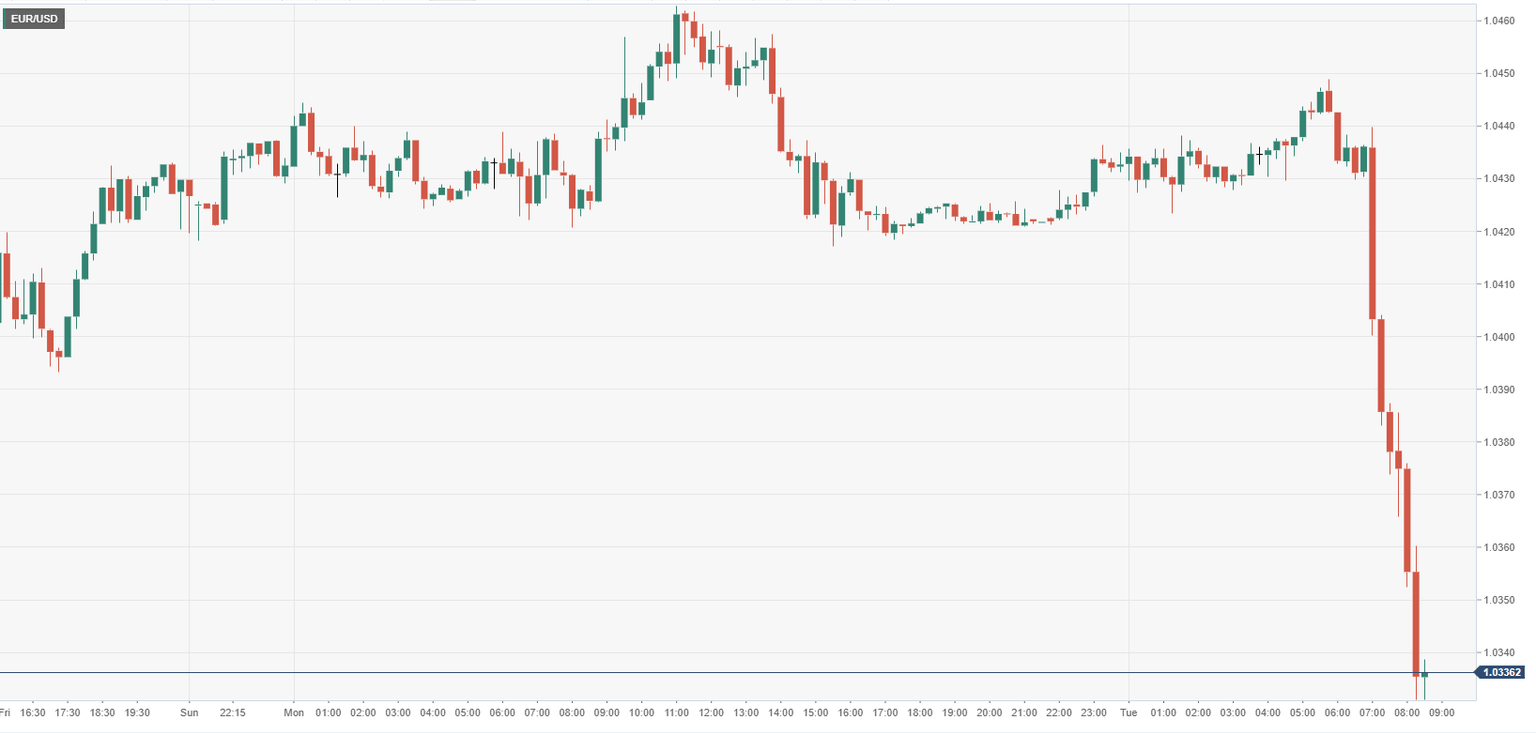 Breaking: EUR/USD slumps to lowest level since December 2002 below 1.0350