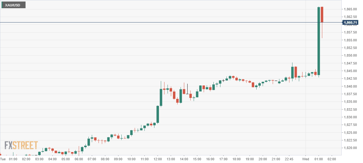 Gold (XAU/USD) bulls remained unstoppable, as the yellow metal rallied nearly $15 in a matter of 15 minutes. The spot refreshed the highest levels in nine years at $1866.90.