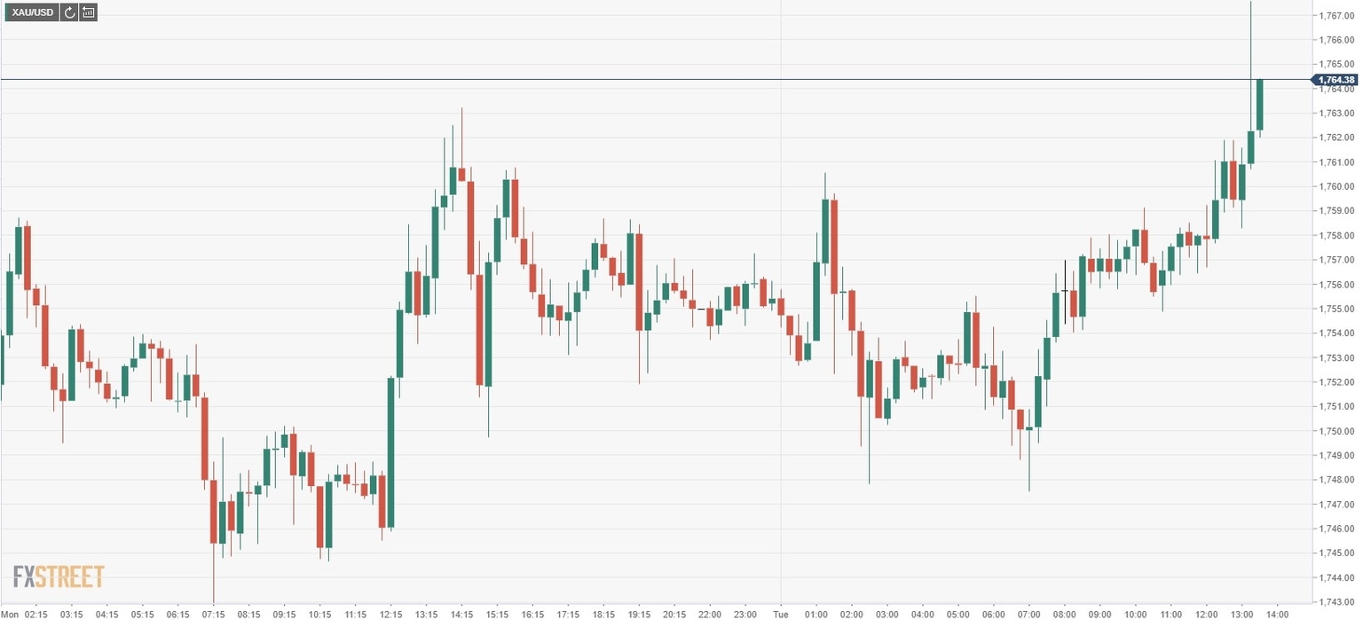 The troy ounce of the precious metal shot higher in the last minutes and touched its best level since October of 2012 at $1,767.31. As of writing, the XAU/USD pair was up 0.58% on the day at $1,766.