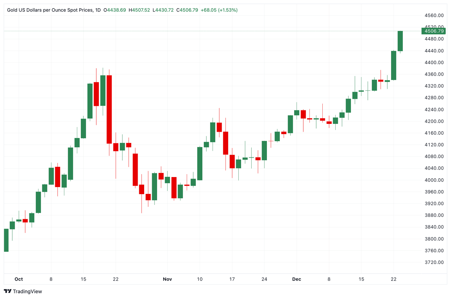 Breaking: Gold rises to record high above $4,500 on safe-haven flows