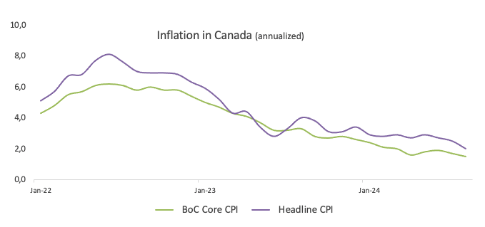 - The Bank of Canada has reduced its policy rate by 75 bps so far this year.