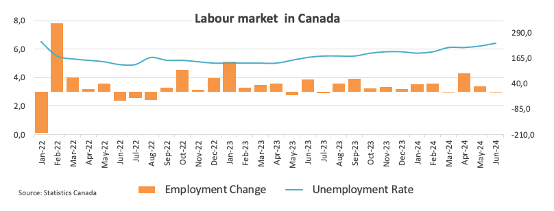 Statistics Canada reported that the Employment Change shrank by 1.4K jobs in June, halting two consecutive months of increases, while the Unemployment Rate ticked higher for the third consecutive month to 6.4%.