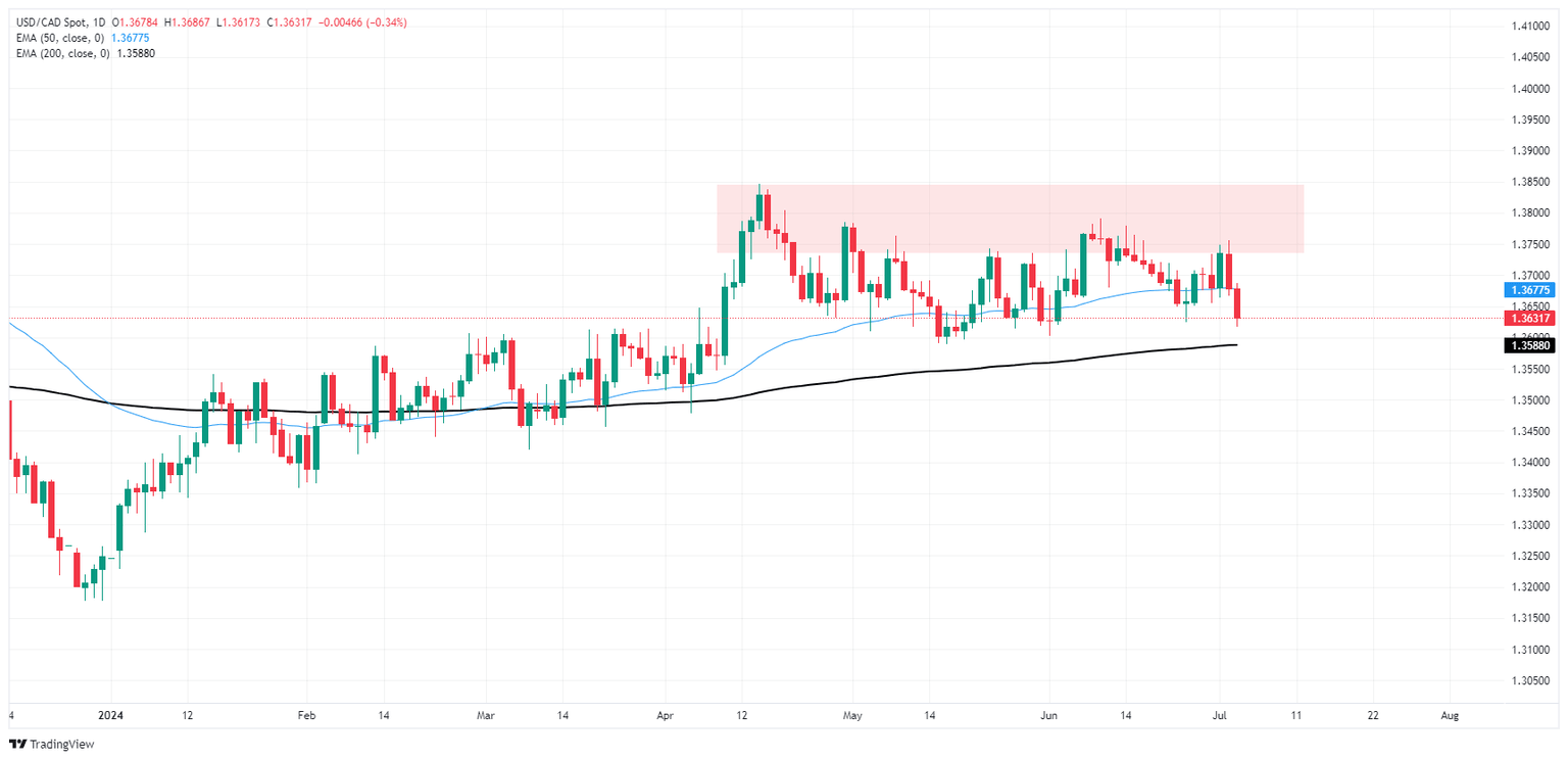 The Canadian Dollar (CAD) gave a shaky performance on Wednesday. The Loonie was mixed against a basket of major currencies but notably climbed one-third of one percent against the US Dollar (USD) after a raft of data misses from the US. Broad-market rate cut hopes are stepping higher after a sharp drag on US ISM Purchasing Managers Index (PMI) activity figures, and rate markets are pricing in over 70% odds of at least a quarter-point rate trim from the Federal Reserve (Fed) in September.