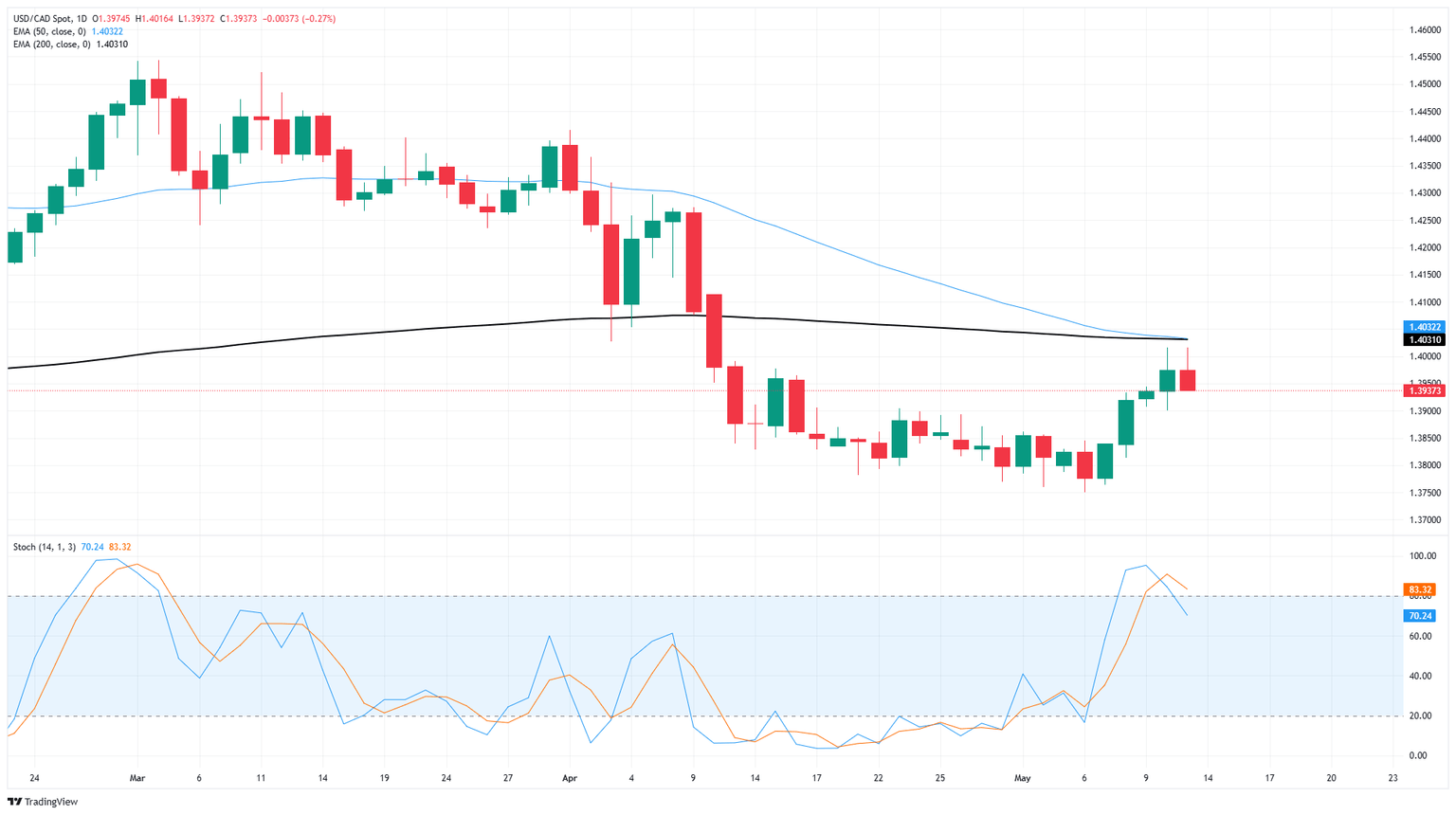- USD/CAD has been forced back below the 1.3950 level as a result, chalking in a technical flub of the 200-day Exponential Moving Average (EMA) near 1.4030.