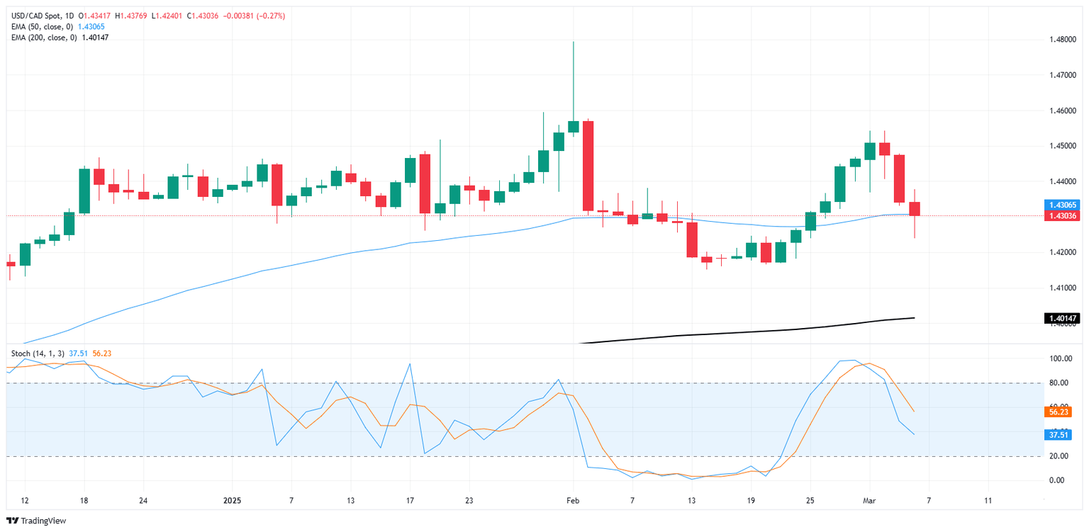 The Canadian Dollar (CAD) explored the high end on Thursday as market confidence in the US Dollar (USD) waivered in the face of ongoing tariff ambiguity from Unites States (US) President Donald Trump. The Loonie pared early gains, but still remains up on the day against the Greenback, keeping USD/CAD hung up on the 50-day Exponential Moving Average (EMA) at the 1.4300 handle.
