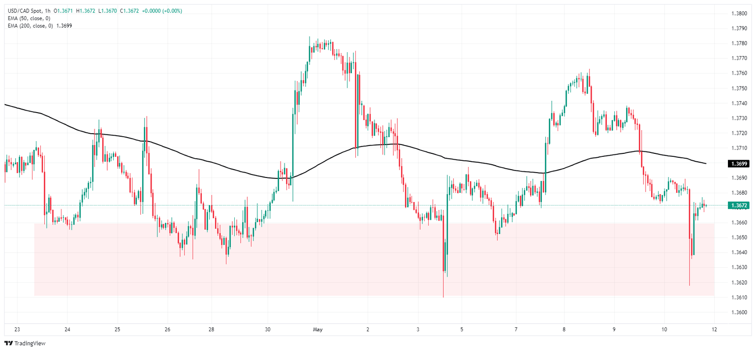 USD/CAD tested below 1.3620 after plunging deep into a near-term demand zone before recovering back above 1.3660. The pair remains capped by the 200-hour Exponential Moving Average (EMA) at the 1.3700 handle.