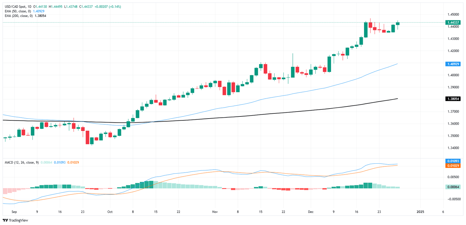 The Canadian Dollar is back into the low side to wrap up the Christmas trading week, falling against the Greenback and pushing USD/CAD into the high end of recent chart congestion. The pair continues to drift higher as bids trade well north of the 50-day Exponential Moving Average (EMA) near 1.4100.