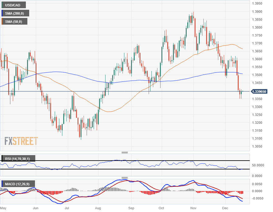Monday sees the Canadian Dollar pulling back into 1.3400 against the US Dollar in a slight paring back from recent bullish momentum. The Canadian Dollar’s three-day bull run last week saw the USD/CAD tip into multi-month lows near 1.3350 after falling from last week’s highs near the 1.3600 handle.