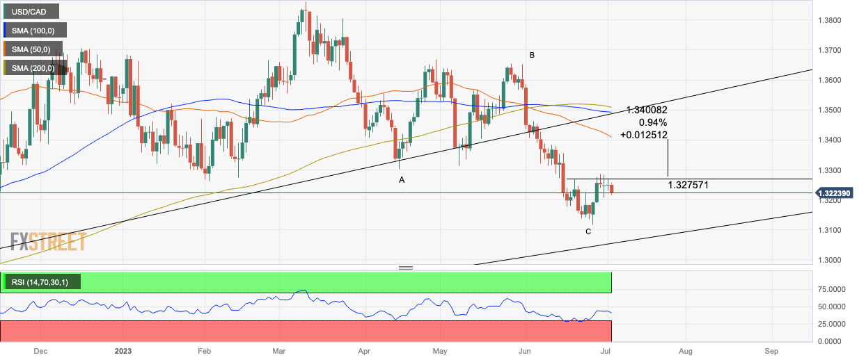 USD/CAD is trading in the lower 1.32s on Tuesday during the US session.