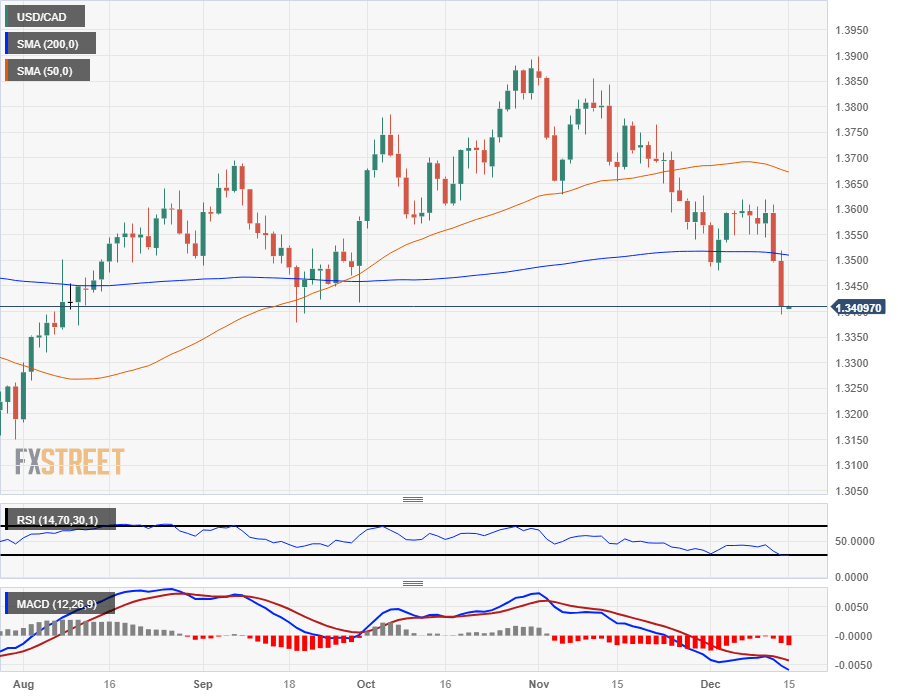 The Canadian Dollar (CAD) is seeing a firm recovery against the US Dollar (USD) extend into a second straight day, sending the USD/CAD further across the 200-day Simple Moving Average (SMA) near 1.3500 as the pair briefly pierces the 1.3400 handle on Thursday.