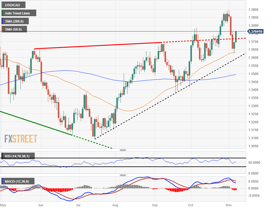 The Canadian Dollar (CAD) has pared back about half of last week’s gains against the US Dollar (USD), sending the USD/CAD back toward the 1.3800 handle after taking a clean bounce from the 50-day Simple Moving Average (SMA) near 1.3630.