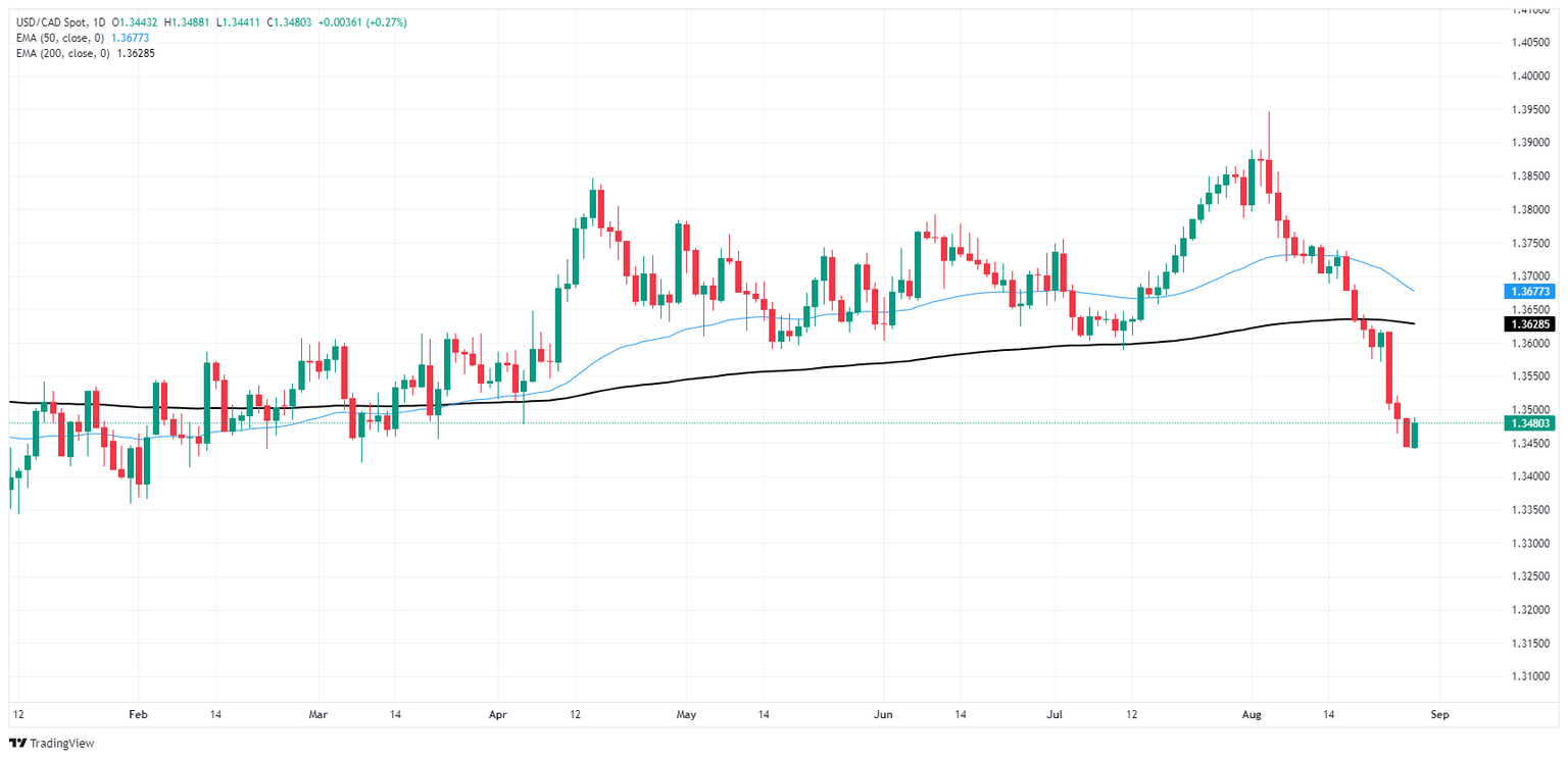 The Canadian Dollar (CAD) shed weight on Wednesday, paring back recent gains against the Greenback, but only slightly. USD/CAD is still churning chart paper on the south side of the 1.3500 handle, and a near-term plunge from recent chart highs near 1.3950 has left long-term moving averages in the dust.