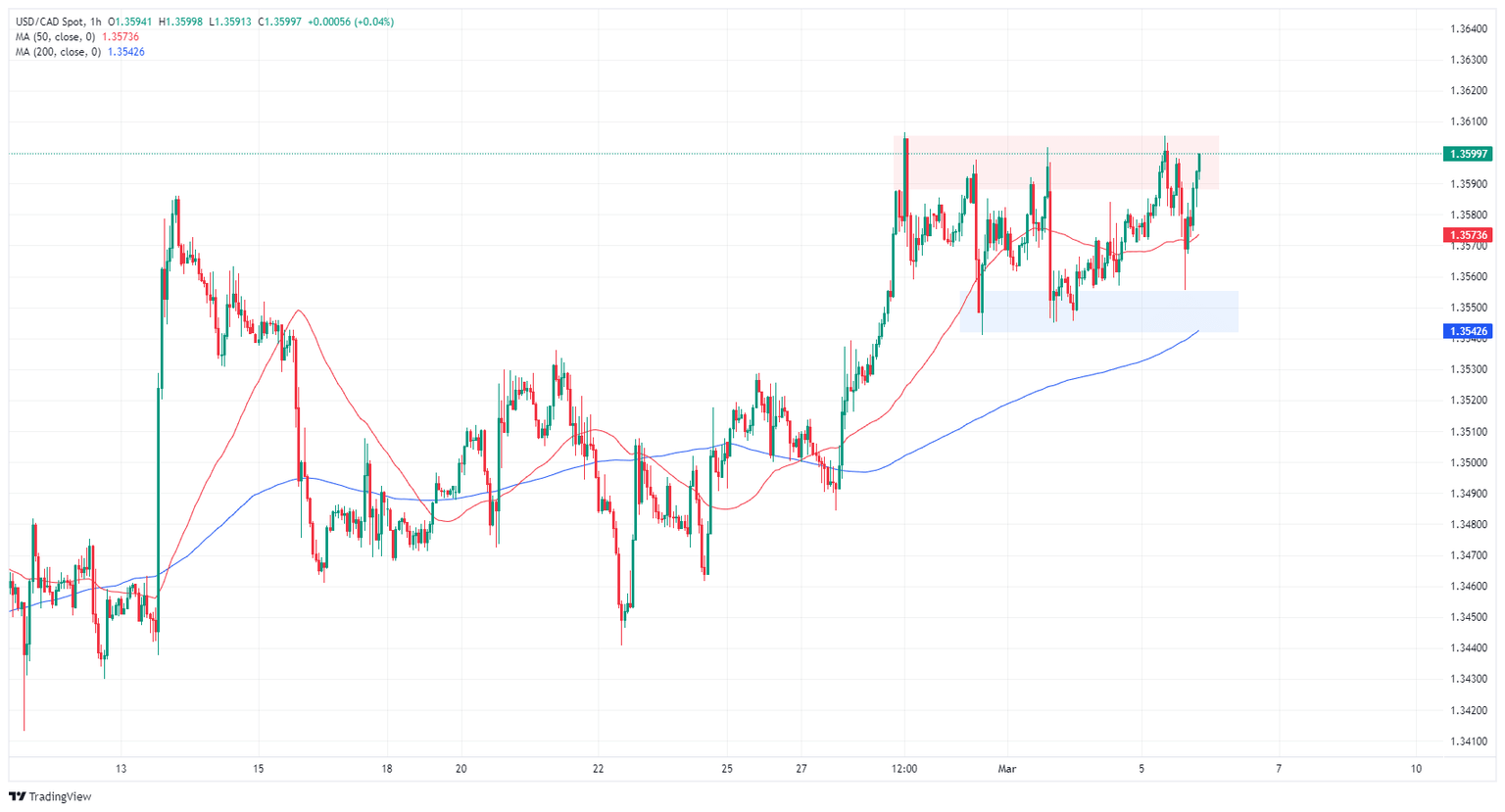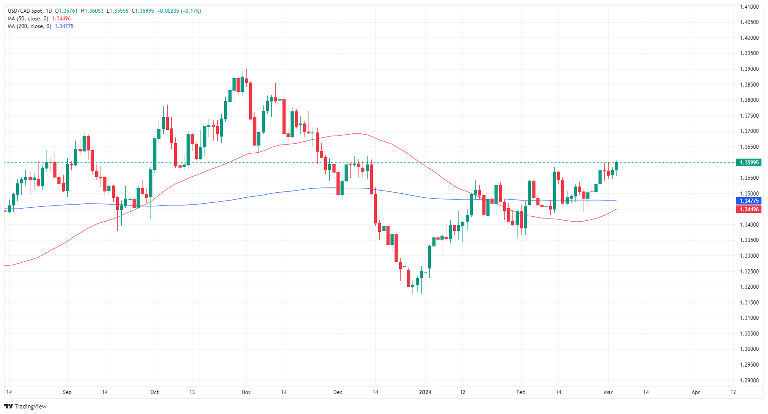 USD/CAD continues to knock into the 1.3600 handle as daily candles pull into congestion. The pair continues to find support above the 200-day Simple Moving Average (SMA) at 1.3477.
