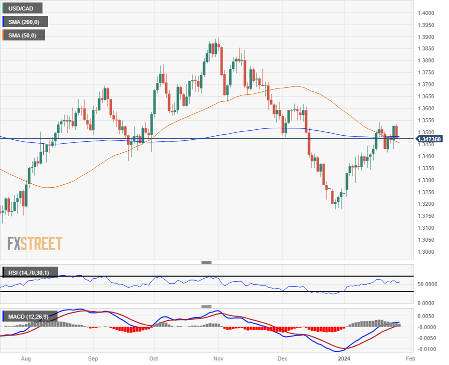 The USD/CAD is getting dragged into a technical congestion pattern on the daily candles as the 50-day and 200-day Simple Moving Averages (SMA) consolidate near 1.3500.