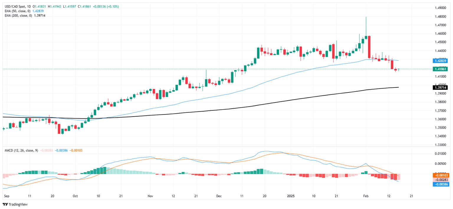 After catching its fourth straight daily gain against the Greenback last week, the Canadian Dollar has lost all momentum on Monday. Overall bullish momentum remains limited, and USD/CAD has waffled further back below the 50-day Exponential Moving Average (EMA) near 1.4280. A firm technical floor is still priced in at the 200-day EMA just south of 1.4000.