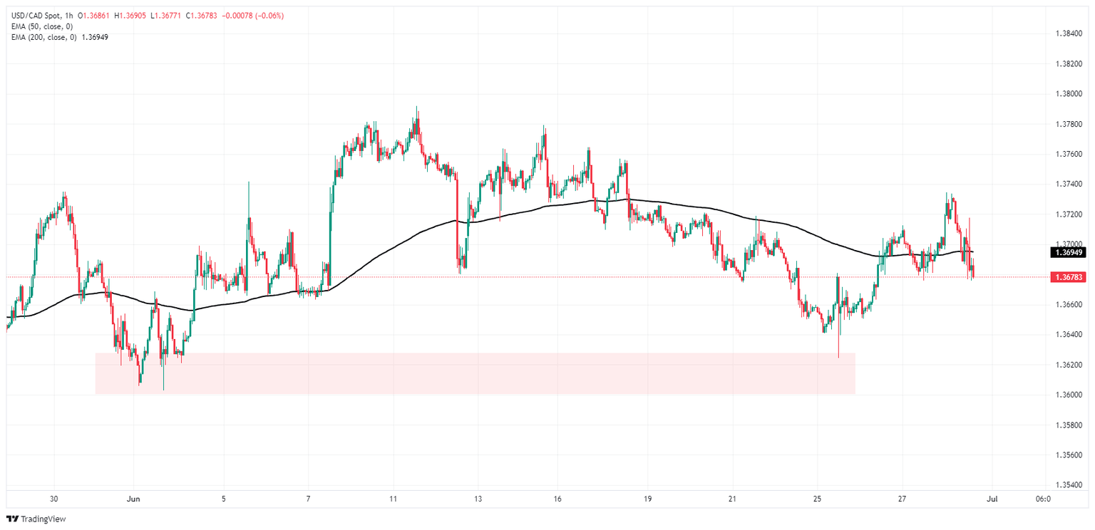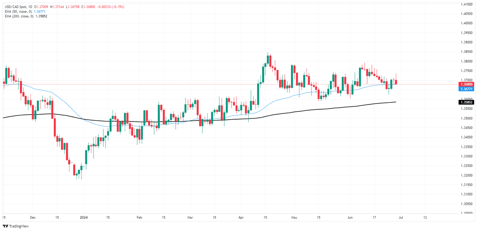 USD/CAD briefly found a fresh high for the week near 1.3735 early Friday before settling back into familiar near-term lows near 1.3675. CAD strength has briefly halted a recent upswing in the pair on a Greenback bid, sending USD/CAD into a rough near-term corkscrew around the 200-hour Exponential Moving Average (EMA) near the 1.3700 handle.
