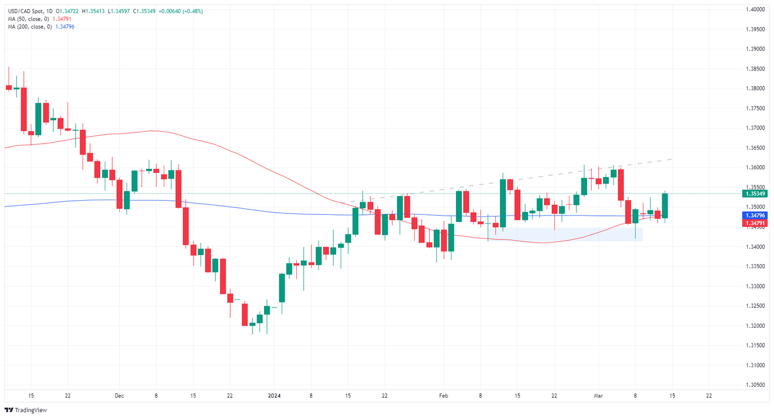 The Canadian Dollar (CAD) is broadly higher on Friday, landing in the green against the majority of its major currency peers but still shedding over half of a percent against the US Dollar (USD) bottom-to-top. Markets piled back into the Greenback bid after US Retail Sales missed the mark on Thursday, and the US Producer Price Index (PPI) stubbornly refused to give up ground.