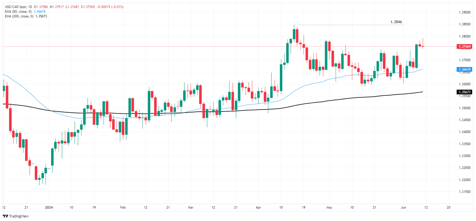2024’s highs rest at 1.3846, and any downside plunges in USD/CAD will find a demand zone just above the 1.3600 handle. Daily candlesticks are still holding on the high side, trading up nearly 4% for the year.