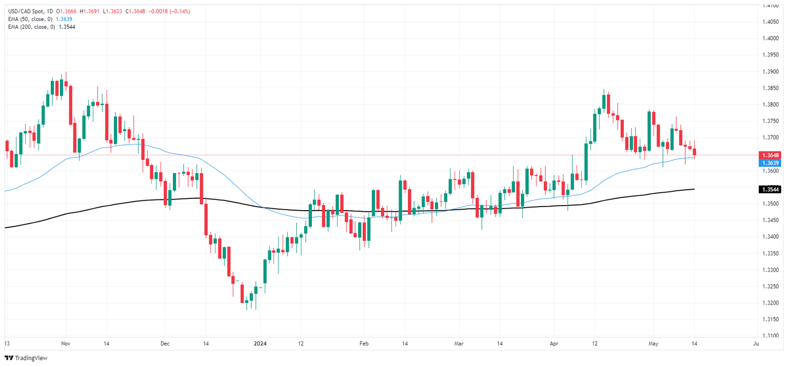 USD/CAD slid back into a familiar demand zone below 1.3660, but the pair is treading water in the near term. Bids continue to cycle near the 200-hour Exponential Moving Average (EMA) at 1.3691.