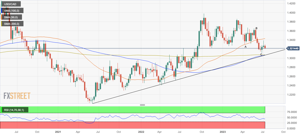 USD/CAD subsequently rose up to just shy of the 1.3400 crossroads where the 50-day Simple Moving Average (SMA) is located, last Thursday, before reversing lower last Friday.