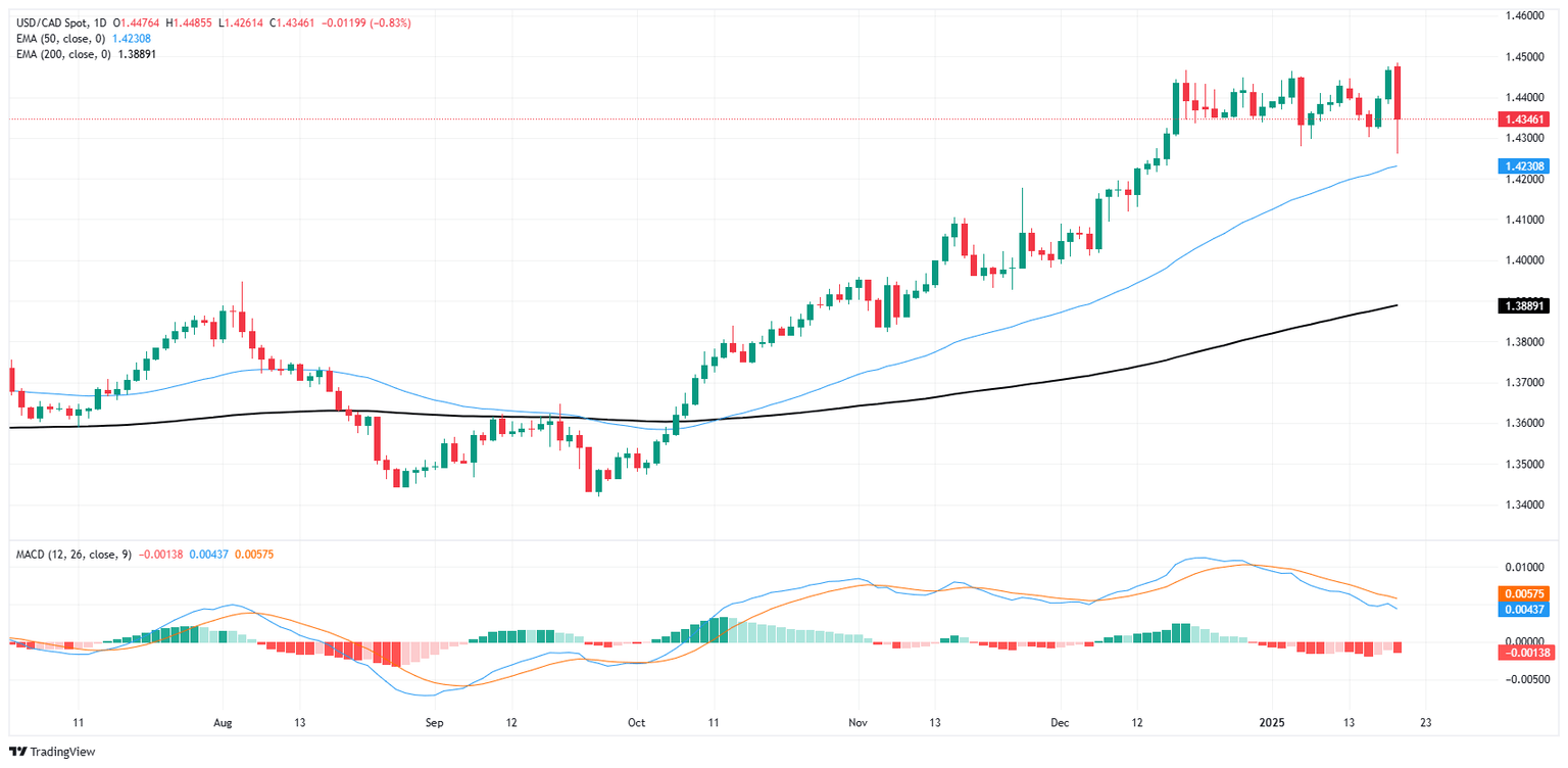 The Canadian Dollar (CAD) caught a rare boost on Monday, dragging USD/CAD back below 1.4400 as investors across the globe find some risk appetite after incoming US President Donald Trump made a last-minute swerve to avoid day-one tariffs via executive order.