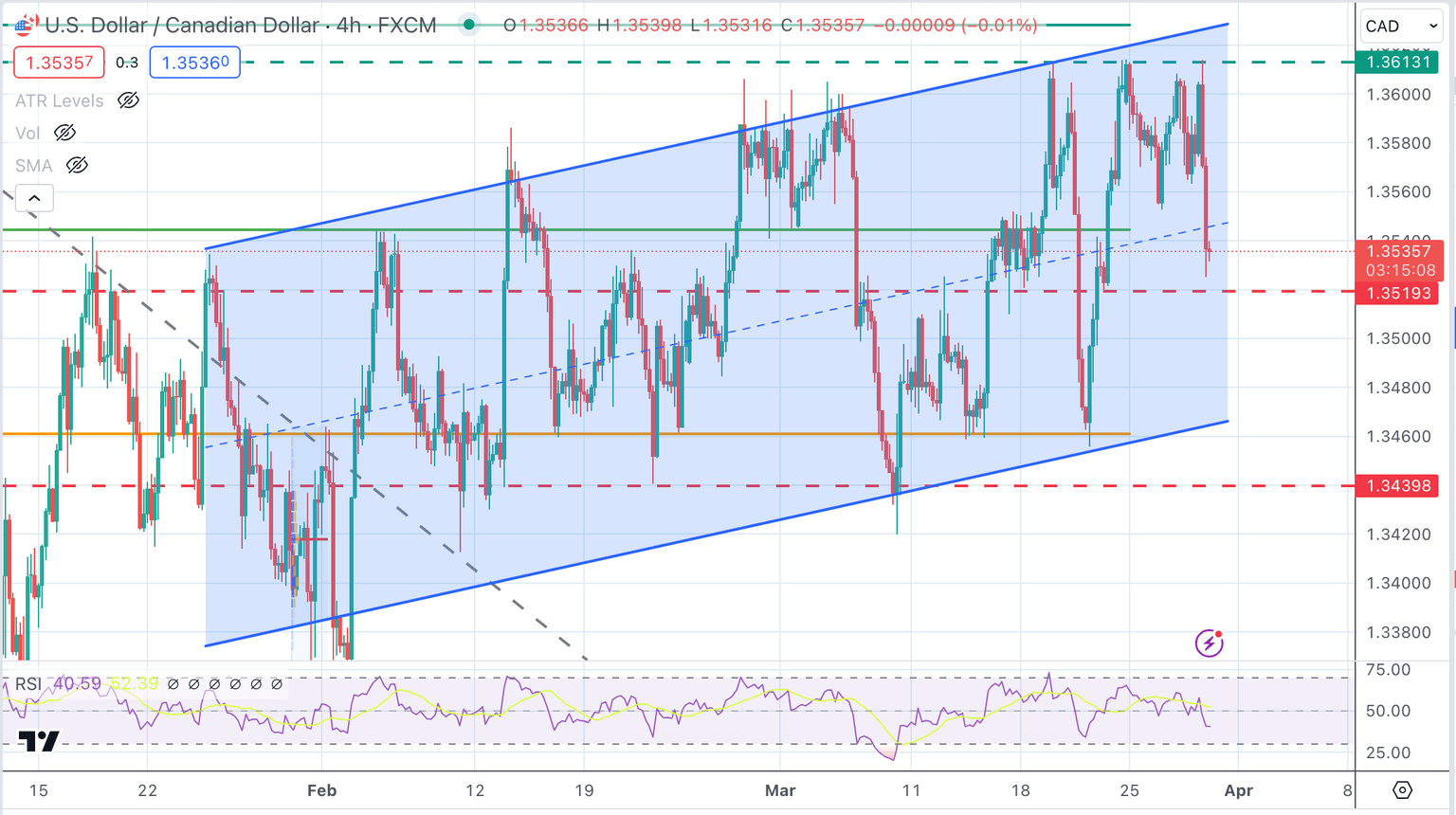 The broader picture is still moderately positive, with the pair trading within a slightly bullish channel. A break of 1.3460 would negate this view. On the upside, resistance levels are 1.3615 and 1.3630.