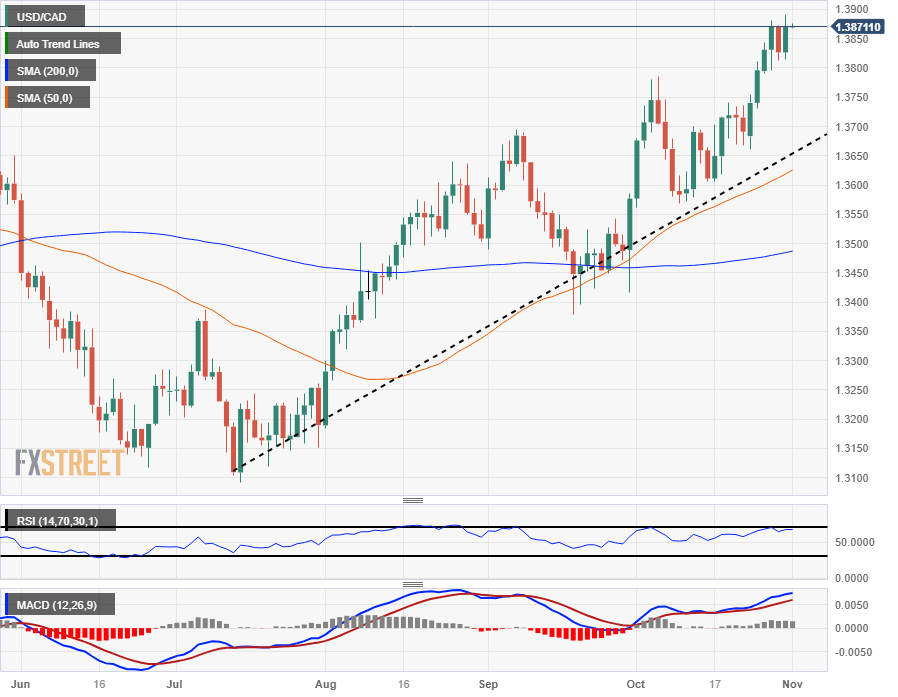 The USD/CAD kicked into an intraday low of 1.3813 Tuesday morning before the Greenback came roaring back, sending the USD/CAD into a fresh twelve-and-a-half month high above 1.3880.
